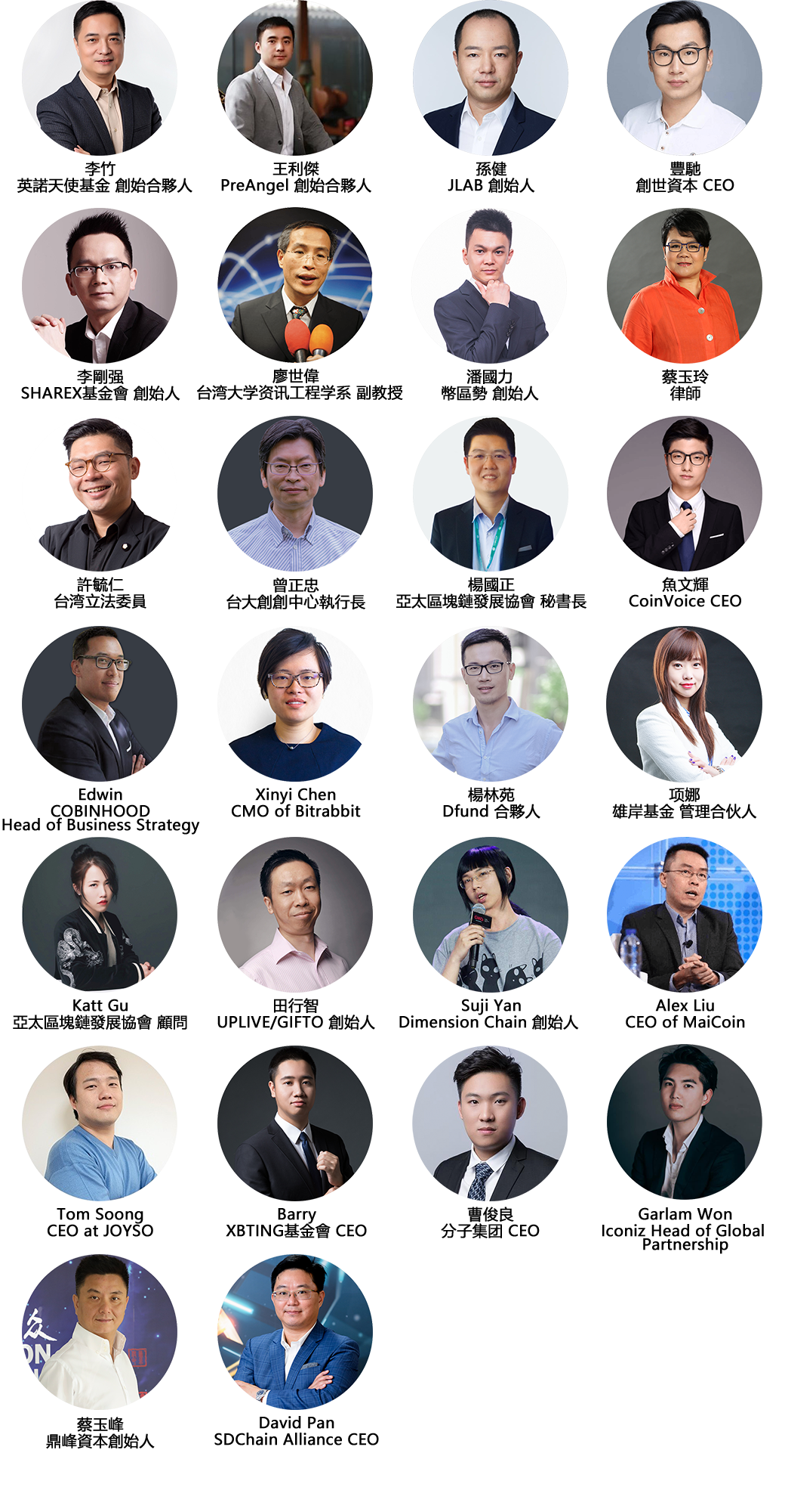 據了解CoinVoice本次峰會將攜手英諾天使基金、JLAB、PreAngel、創世資本、雄岸基金、XBTING基金會、DFund等多家投資機構,並且臺灣當地蔡玉玲律師、立委許毓仁、臺大創創中心執行長曾正忠、臺灣大學資訊工程學系副教授廖世偉、亞太區塊鏈發展協會秘書長楊國正、Joyso CEO Tom Soong、BitRabbit CMO陳欣怡、MaiCoin CEO Alex、BlockCast CEO Kevin均已確認出席。此外值得一提的是CoinVoice此次區塊鏈創新峰會還得到日本、東南亞、韓國多個知名區塊鏈媒體的全程報道。這將是臺灣近期最值得矚目與備受關注的一次區塊鏈盛會,讓我們拭目以待!